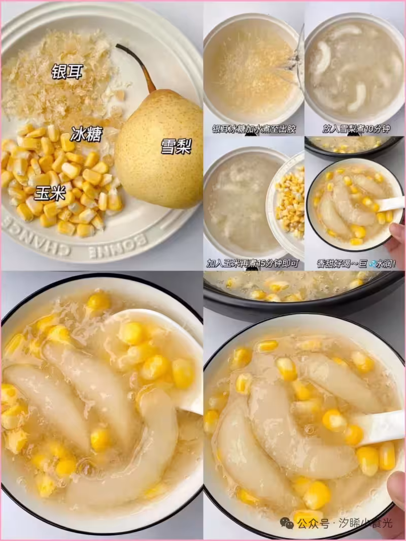 1. 先將銀耳和冰糖加水煮,一直煮到銀耳出膠。
