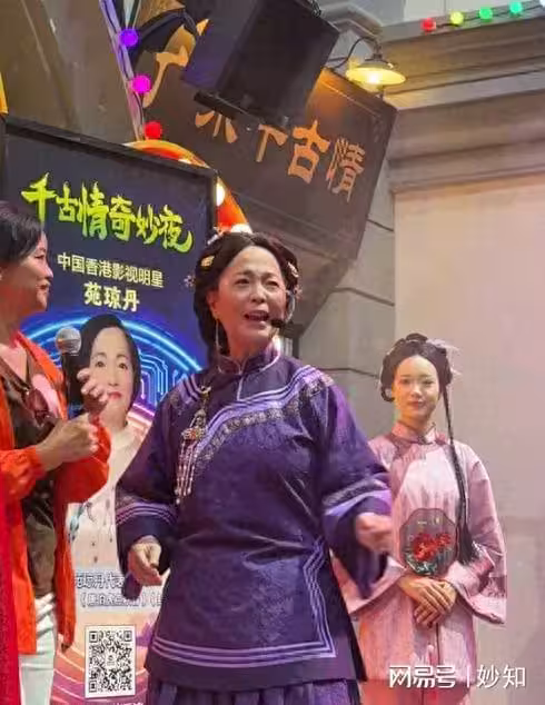 戲台前圍得里三層外三層,62歲的苑瓊丹穿著復刻版"石榴姐"戲服,帶著遊客合唱粵語歌,台下大叔們扯著嗓子喊"秋香"的聲音蓋過了音響。