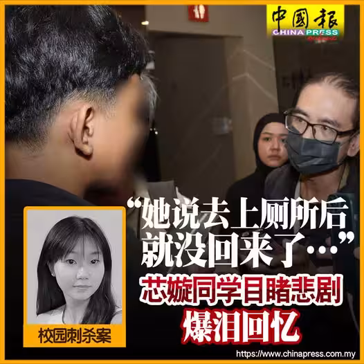 (吉隆坡16日訊)「男中學生刺死學姐」震驚全國,同班男同學首度現身,親揭葉芯嫙遇害前驚魂時刻!