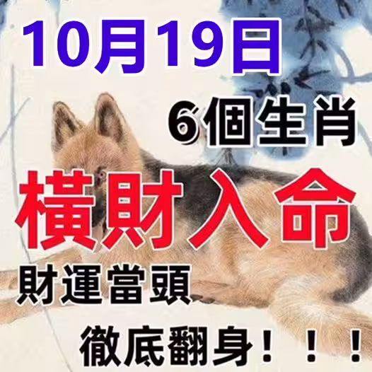 10月19日一筆橫財入命,6個生肖財運當頭,徹底翻身!