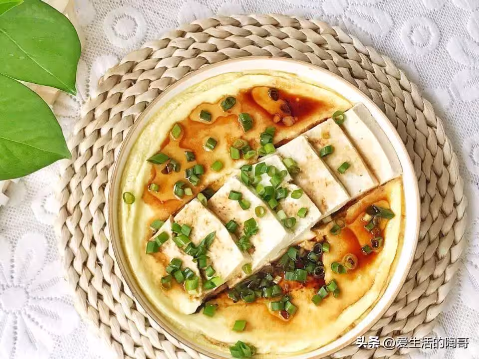食材;豆腐1塊,雞蛋3個,鹽,蔥,味極鮮