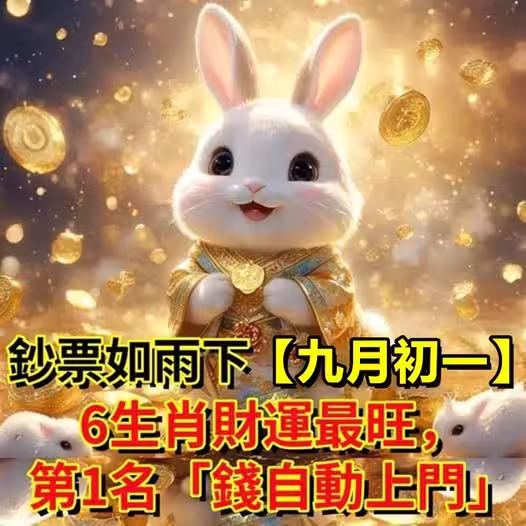 鈔票如雨下!【農暦九月初一】6生肖財運最旺,第1名「錢自動上門」