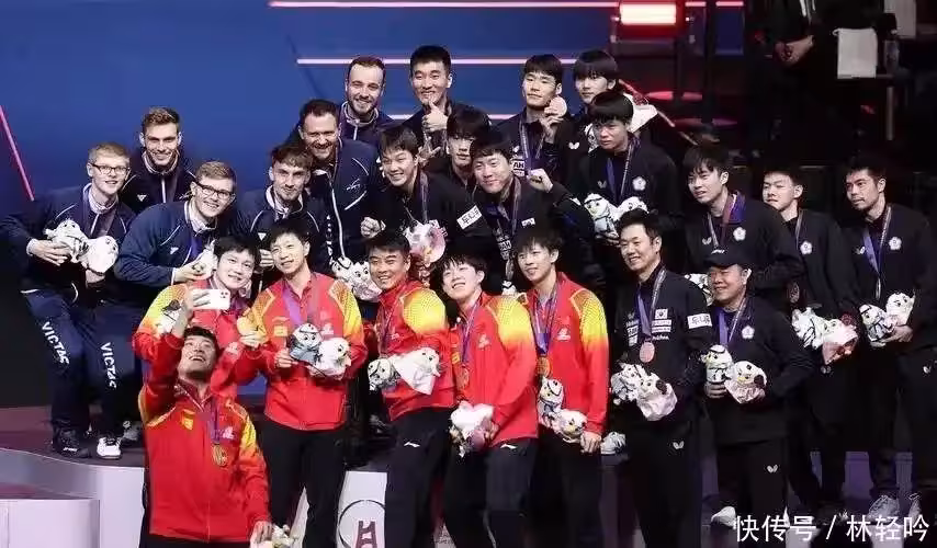 兩位年輕選手面對突如其來的中心位置,顯得有些驚訝和不知所措,甚至想要避開。王楚欽看到後,還特意引導向鵬去觸碰象徵勝利的冠軍獎盃。這一幕被鏡頭完整記錄下來,毫無排練的痕跡,顯得如此自然,仿佛是他內心真實的流露。這短短的幾秒鐘,不僅讓觀眾為之動容,也展現了團隊精神的力量。