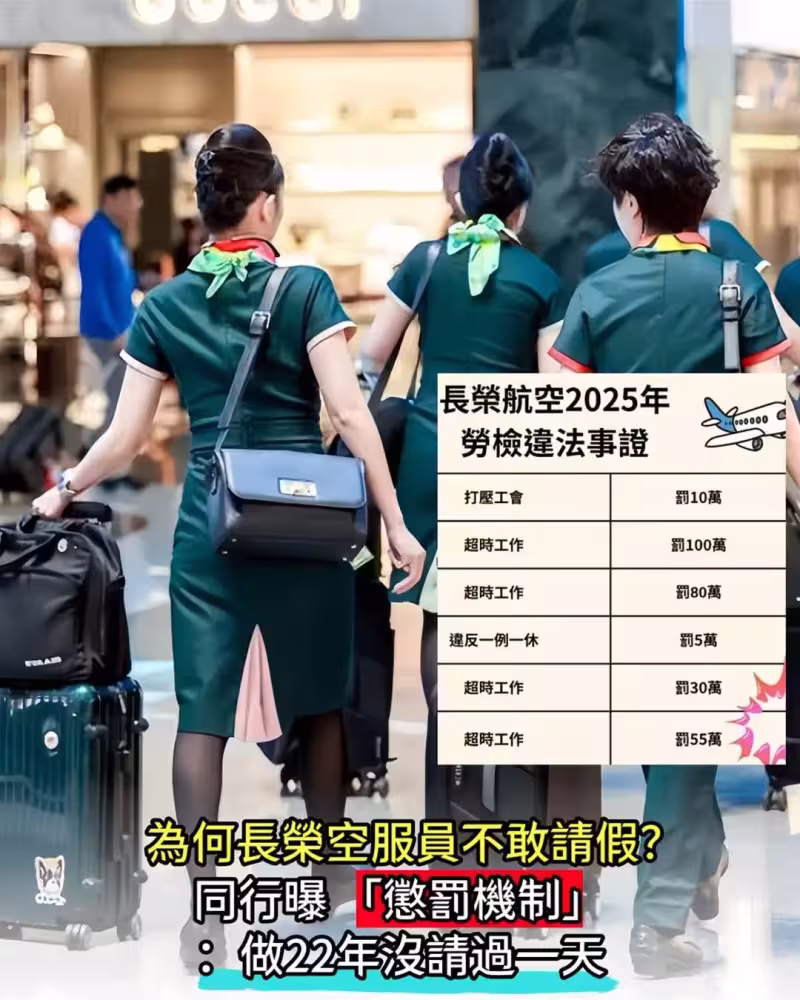 為何長榮空服員不敢請假?同行曝「懲罰機制」:做22年沒請過一天