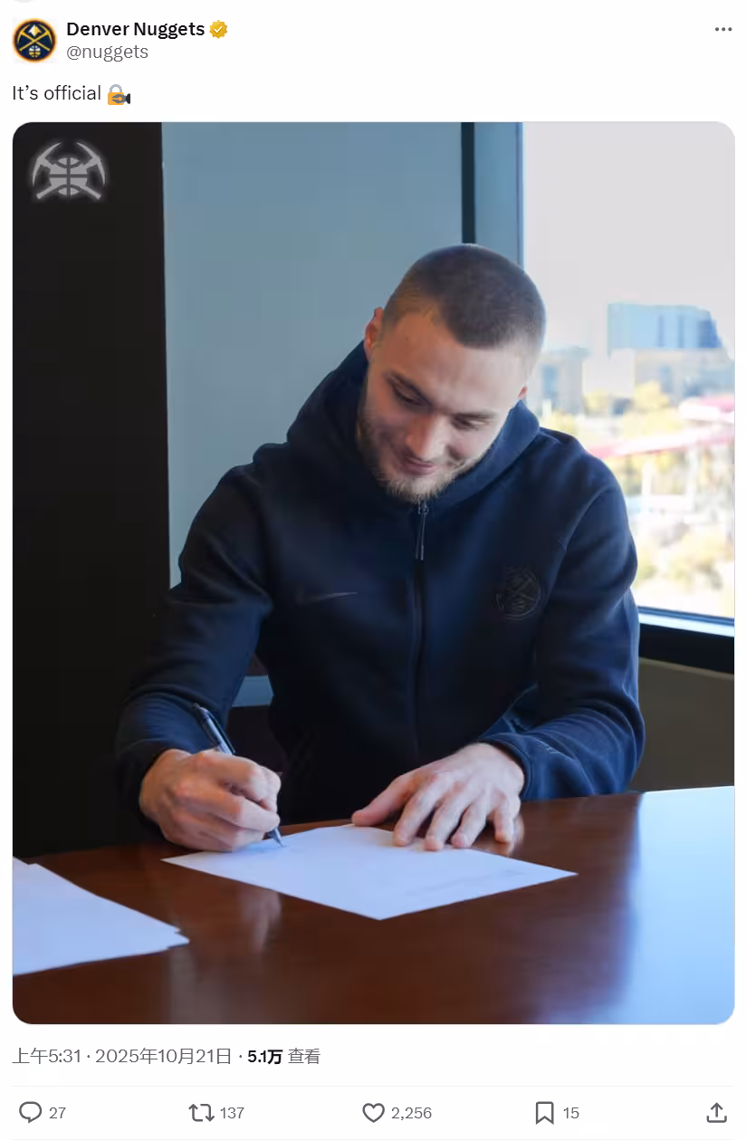 5年1.25億!掘金壓哨簽約!整個西部都變天了