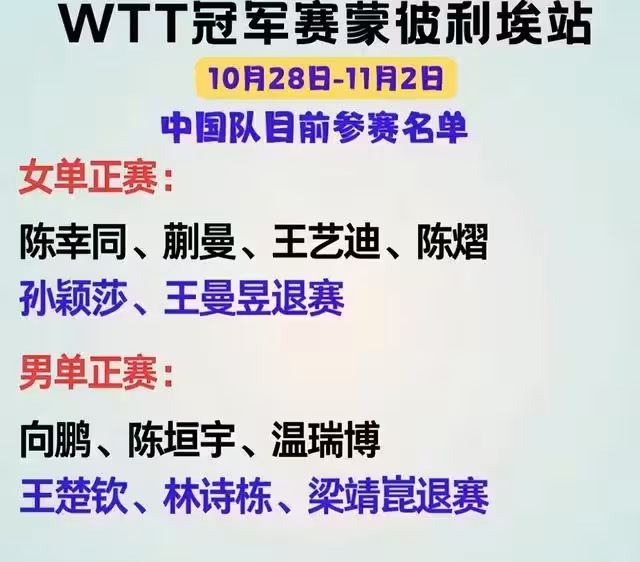 這些人員的退賽絕不是臨時起意,而是經過慎重考慮的,中國乒協早在10月15日的時候就公布了十五運的賽事和名單。