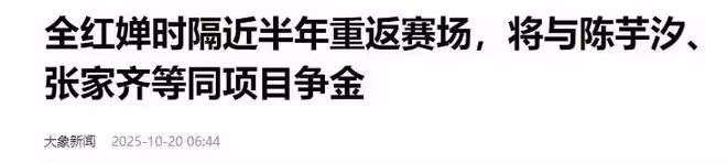郭晶晶怎麼也沒有想到,官宣喜訊的全紅嬋,會和她走了同一條老路**