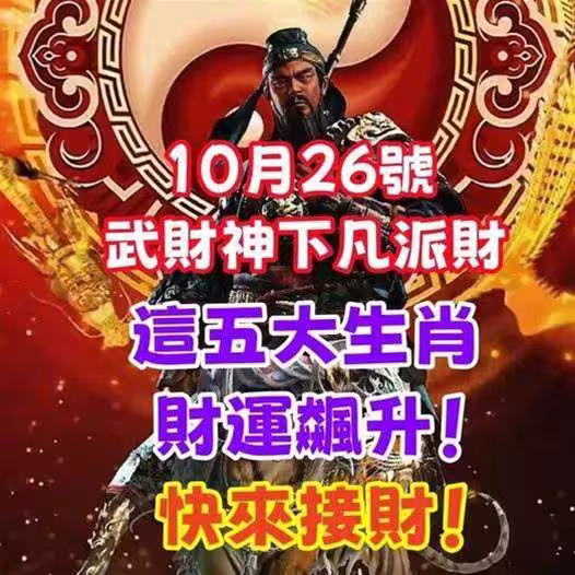10月26號,武財神下凡派財,這五大生肖財運飆升!!快來接