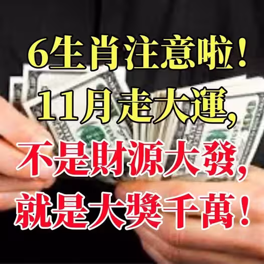 6生肖注意啦!11月走大運,不是財源大發,就是大獎千萬!