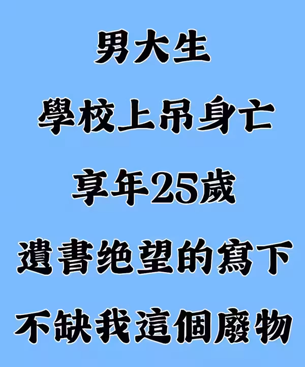 男大生「學校上D身亡」享年25歲,遺書絕望寫下:「不缺我這個廢物...」