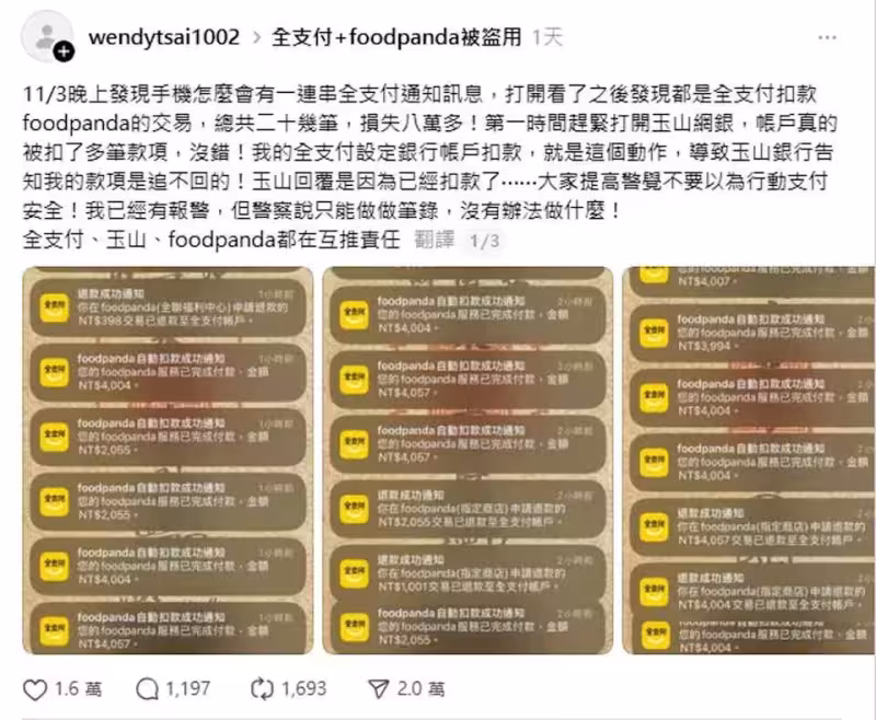 全支付慘爆「盜刷潮」官方急發4點聲明!他被連刷20筆「一夜損失8萬」