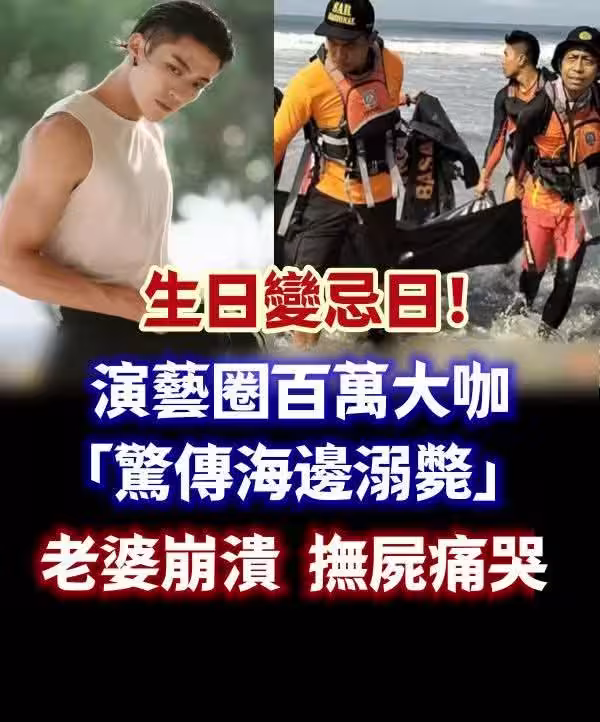 生日變忌日!演藝圈百萬大咖「驚傳海邊溺斃」 老婆崩潰「撫屍痛哭!」