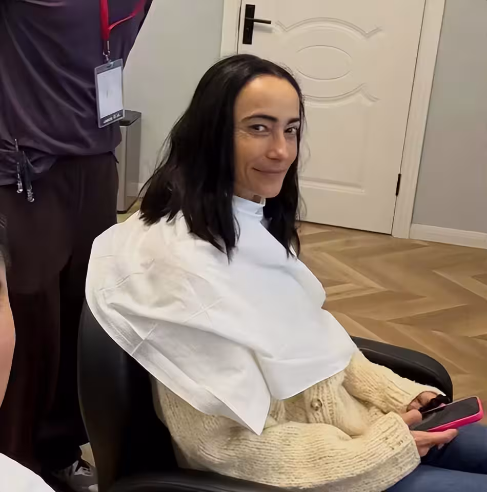 再看Lisa,頭髮隨意扎著,臉上能看到雀斑,鼻翼兩側的雀斑連成了小芝麻粒串,皮膚有點粗糙還鬆弛。