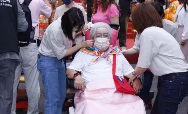 ▲2023年郭台銘母親出席郭台銘爭取國民黨總統提名板橋造勢活動。(圖/記者湯興漢攝)