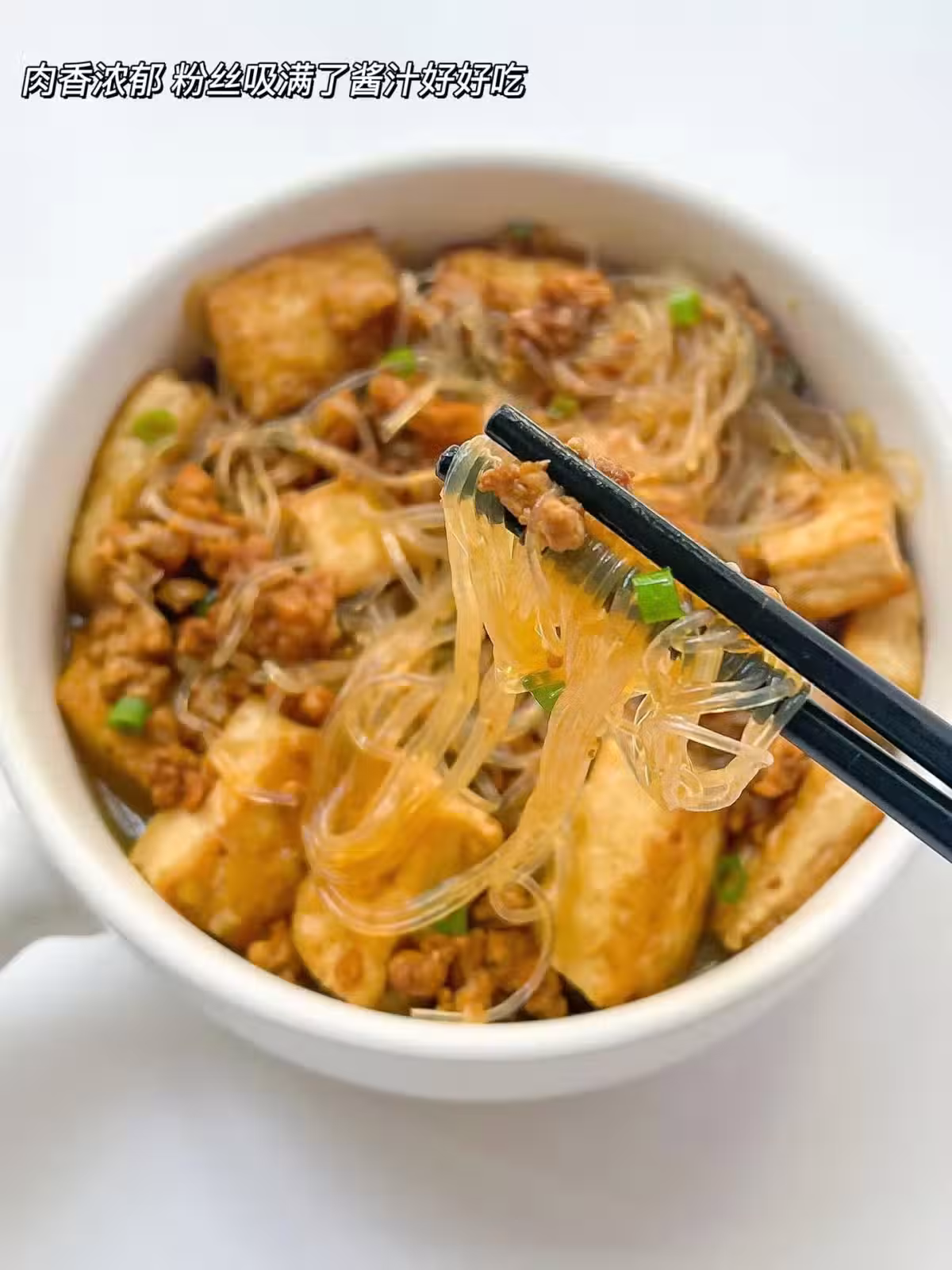 肉末粉絲豆腐,鮮香嫩滑,這湯汁拌飯絕了