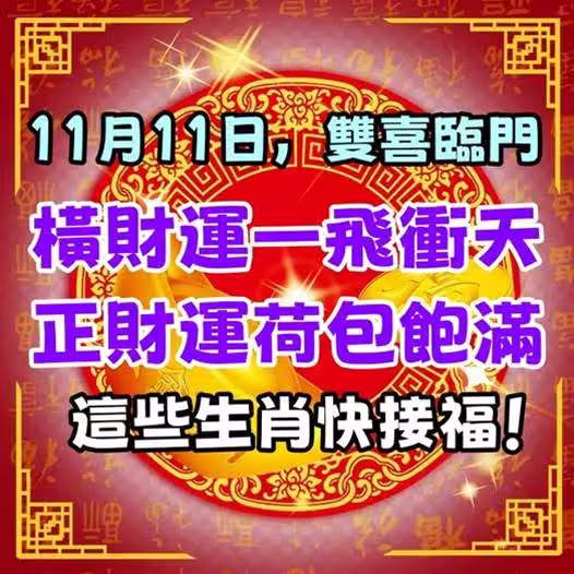 11月11日,雙喜臨門,橫財運一飛沖天,正財運荷包飽滿,快接福!