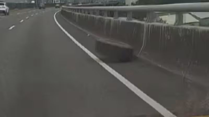 台74線上驚傳百公斤輪胎脫落滾落車道!一輛曳引車因右後輪螺絲斷裂,導致兩顆重達百公斤的輪胎脫落,一路從最外側車道滾到最內側,砸中兩輛休旅車。目擊民眾驚呼:「快速道路瞬間變成障礙賽道!」所幸事故中無人受傷,警方呼籲駕駛人上路前務必做好車況檢查,以確保行車安全。專家指出,從高速行駛的曳引車上脫落的輪胎,具有極大的危險性,駕駛恐需賠償被波及車主的損失。