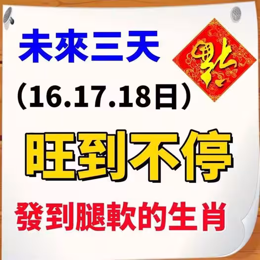 未來三天(11月16.17.18日)旺到不停,發到腿軟的生肖.