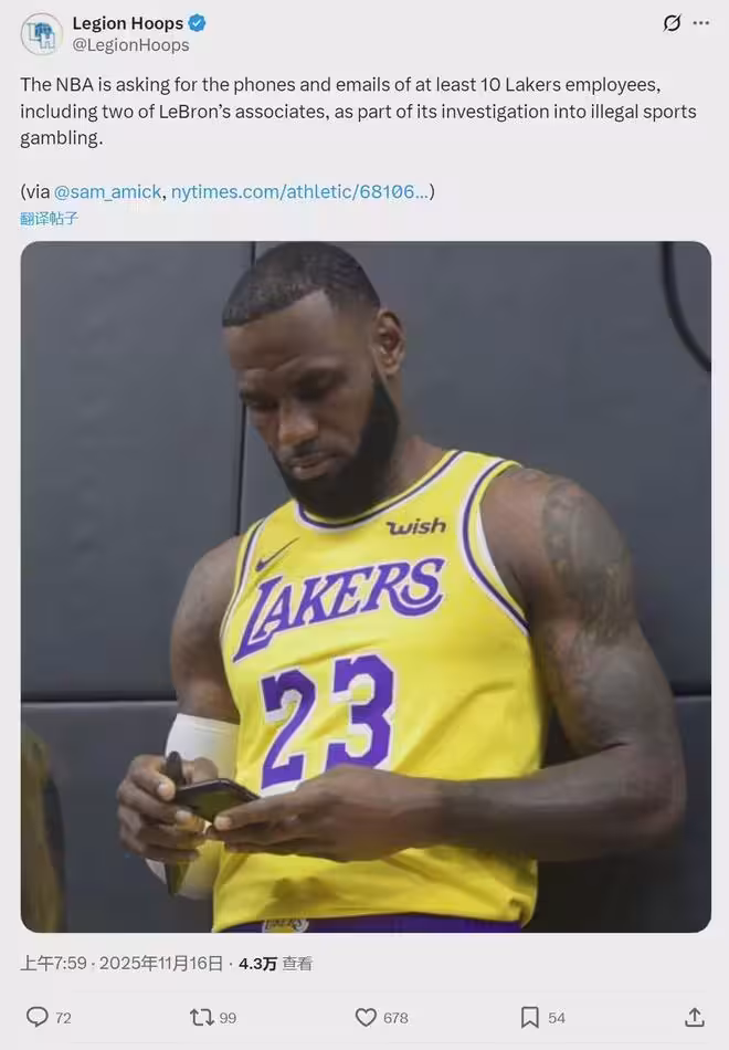 NBA動手了!開始調查湖人!詹姆斯兩個小弟上交手機