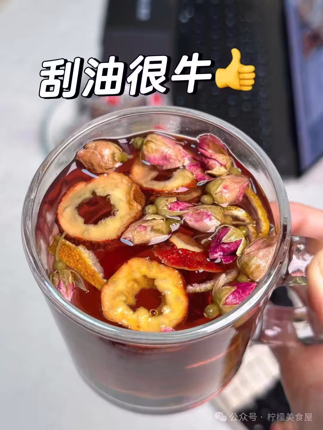 食材雖多,效果是真的好,刮油解膩。淡淡的陳皮味、玫瑰味,特別的好聞。喝起來酸酸甜甜的,特別的好喝。 大餐過後,來一杯也是超級好的。一天喝休息一天,或者兩天連續喝,休息一天。堅持打卡,身體會有所變化哦。