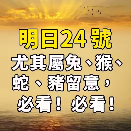 明日 24 號,尤其屬兔、猴、蛇、豬留意,必看