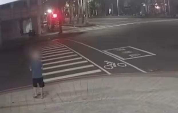 從監視器畫面可以看到,李男突然躺在斑馬線上,長達60秒,接著一輛轎車突然駛來,由於當時號誌燈已轉為綠燈,駕駛未能及時發現路上有人,直接將李男輾過。