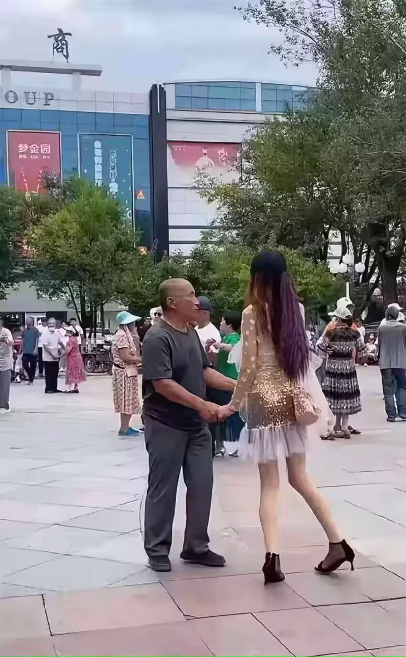 大爺和「靚女」廣場跳舞引注目!飄逸秀髪逆天長腿卻「毀在一個回眸上」,網驚:背影殺手,秒變正面「兇手」