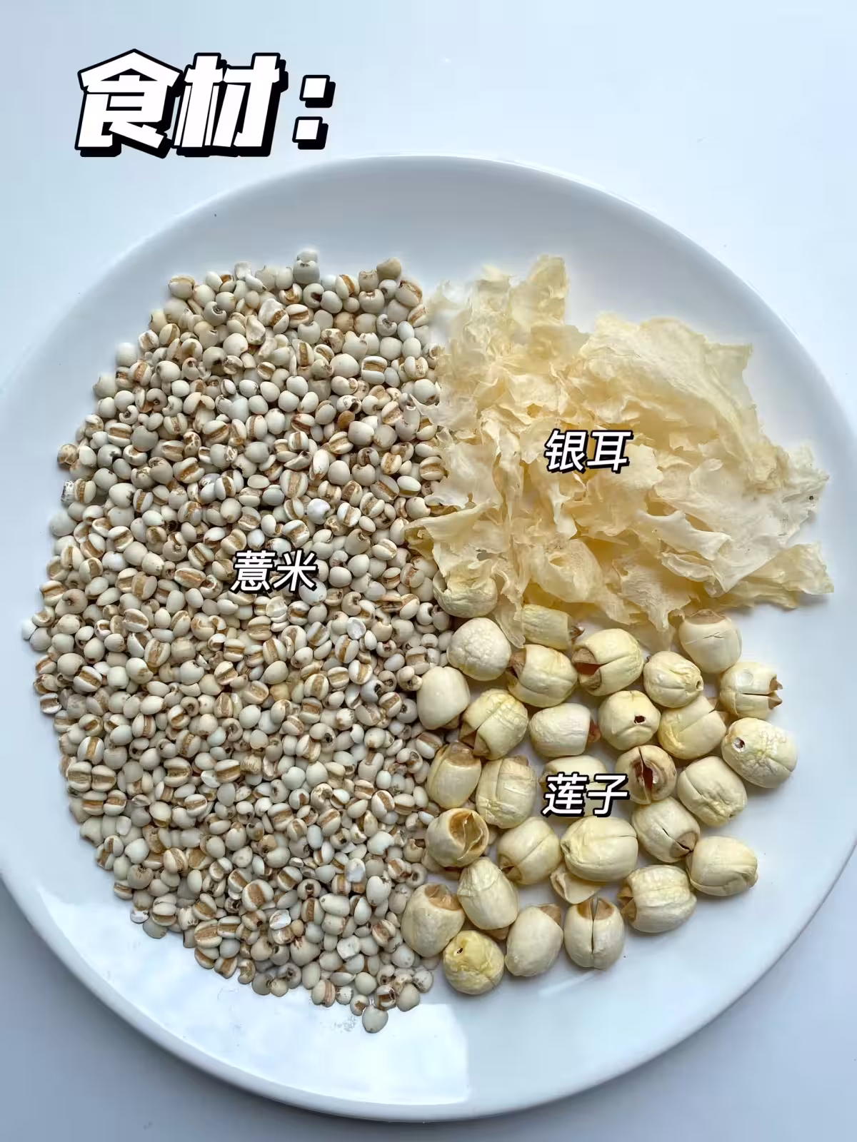 ✅薏米先炒一炒,這樣容易煮熟,也沒這麼寒。薏米先煮半個小時加入銀耳蓮子再煮20分鐘就可以啦!