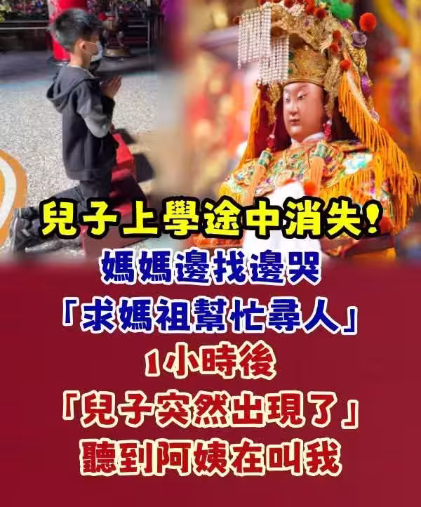 兒子上學途中消失,媽媽邊找邊哭求媽祖幫忙尋人, 1小時後兒子突然出現了:聽到阿姨在叫我