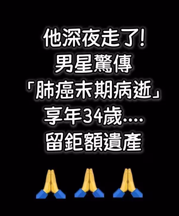 他深夜走了!男星驚傳「肺癌末期病逝」,享年34歲....留鉅額遺產