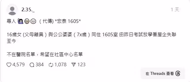兩人也在社群平台Threads發文求助,盼望透過網絡的力量獲得更多線索,同時懇請媒體協助擴散訊息,只願能早日找到黎凱琪等人的下落,結束這場煎熬的等待。訊息曝光後,許多網友紛紛留言表達不舍:「看到最後訊息真的好心疼,希望能平安無事」、「拜託一定要找到人,為家屬加油打氣」、「那句好辛苦看了好難過,祈禱奇蹟出現」、「真的太殘忍了,希望她和家人都能平安歸來」、「大家一起幫忙轉發,集氣讓他們早日團圓」。
