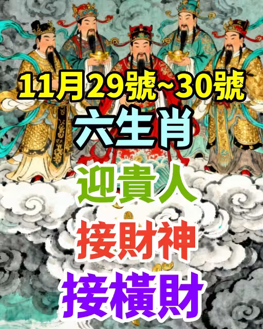 11月29號~30號: 接財神 迎貴人 接橫財的6大生肖