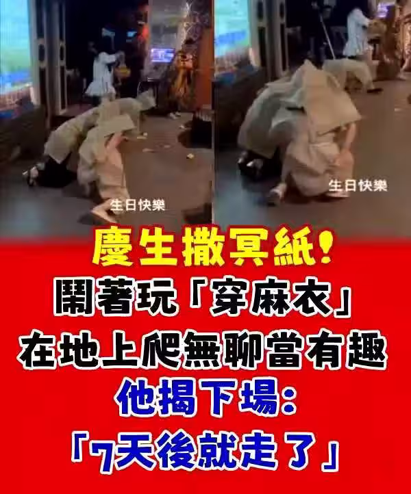 慶生撒冥紙!鬧著玩「穿麻衣跪地上爬」...他揭下場「7天後就走了!」