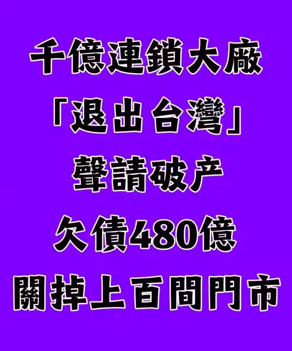 快訊 / 千億連鎖大廠「退出台灣」聲請破產!欠債480億「關掉上百間門市」