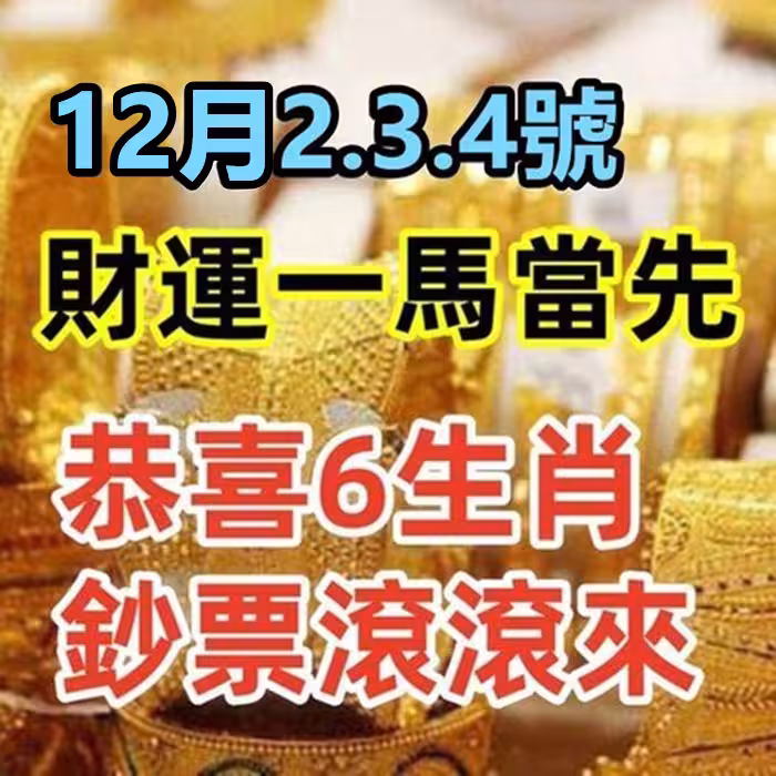 12月2.3.4號財運一馬當先,恭喜6生肖鈔票滾滾來