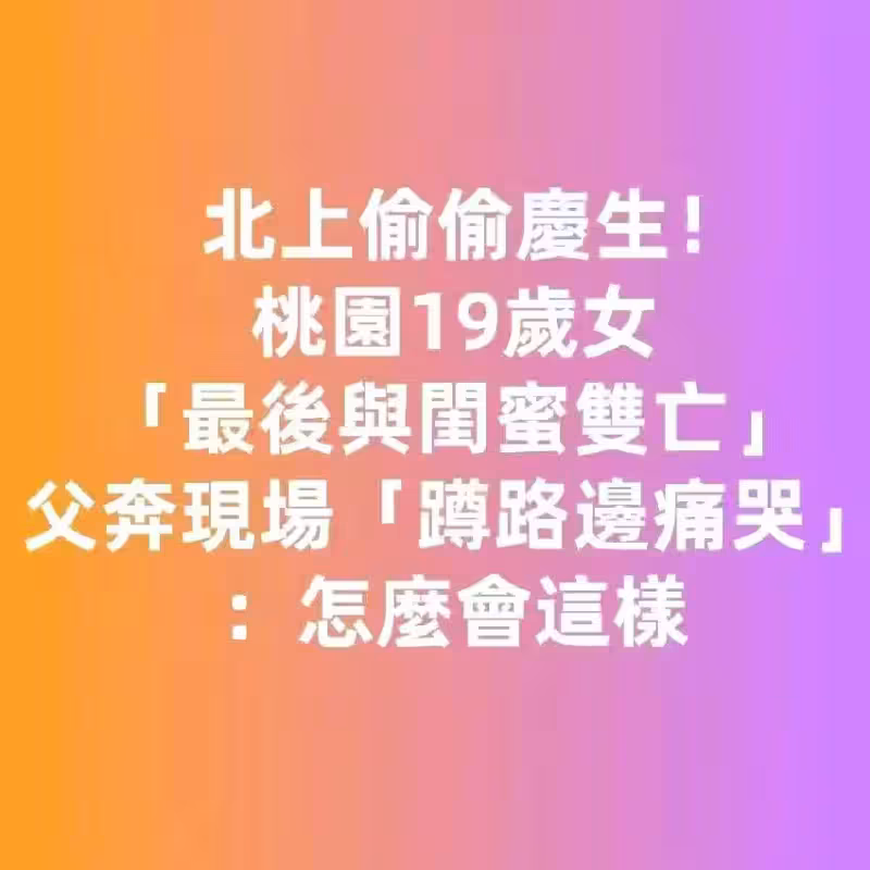 桃園女北上偷偷慶生! 「最後與閨蜜雙亡」...父奔現場 「蹲路邊痛哭」:怎麼會這樣!