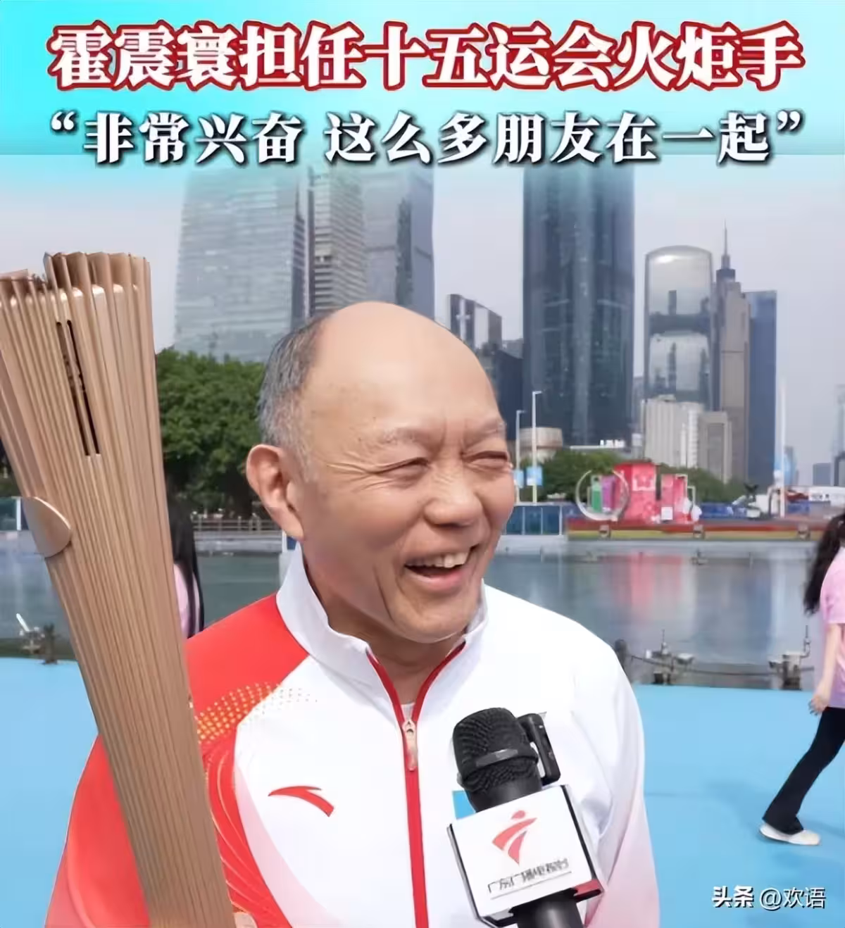 在廣州站的傳遞現場,76歲的霍震寰也現身。