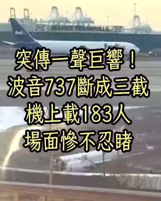突傳一聲巨響!波音737斷成三截,機上載183人, 場面慘不忍睹……