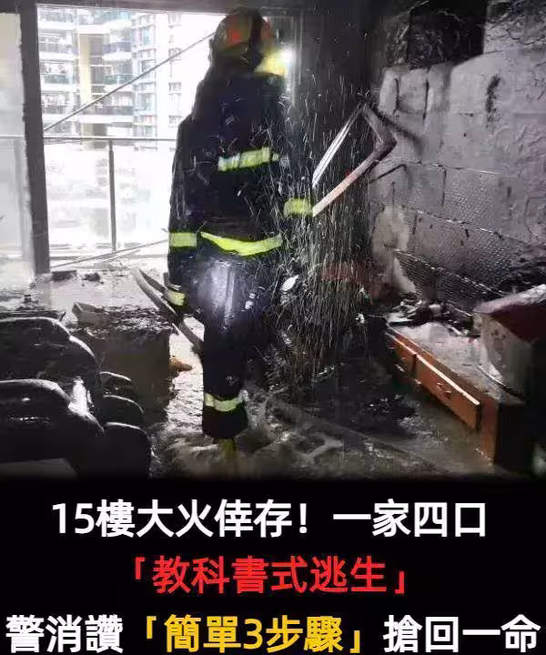 15樓大火倖存!!一家四口「教科書式逃生」救難人員狂贊「簡單3步驟」搶回一命