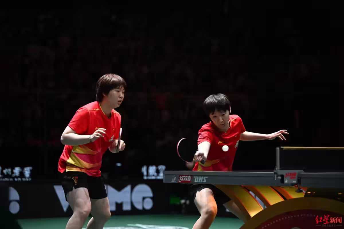 女雙賽事,中國隊派出今年世乒賽女雙冠軍王曼昱/蒯曼組合,對陣張本美和/大藤沙月。中國隊組合搶下開局奠定基礎,以11比9取勝,為中國隊取得總比分8比5的勝利。