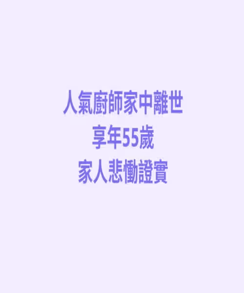 快訊/ 人氣廚師「家中離世」享年55歲!