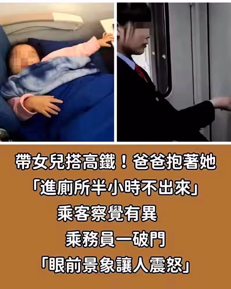 帶女兒搭區間車!爸爸抱著她「進廁所半小時不出來」乘客察覺有異 乘務員一破門「眼前景象讓人震怒」!