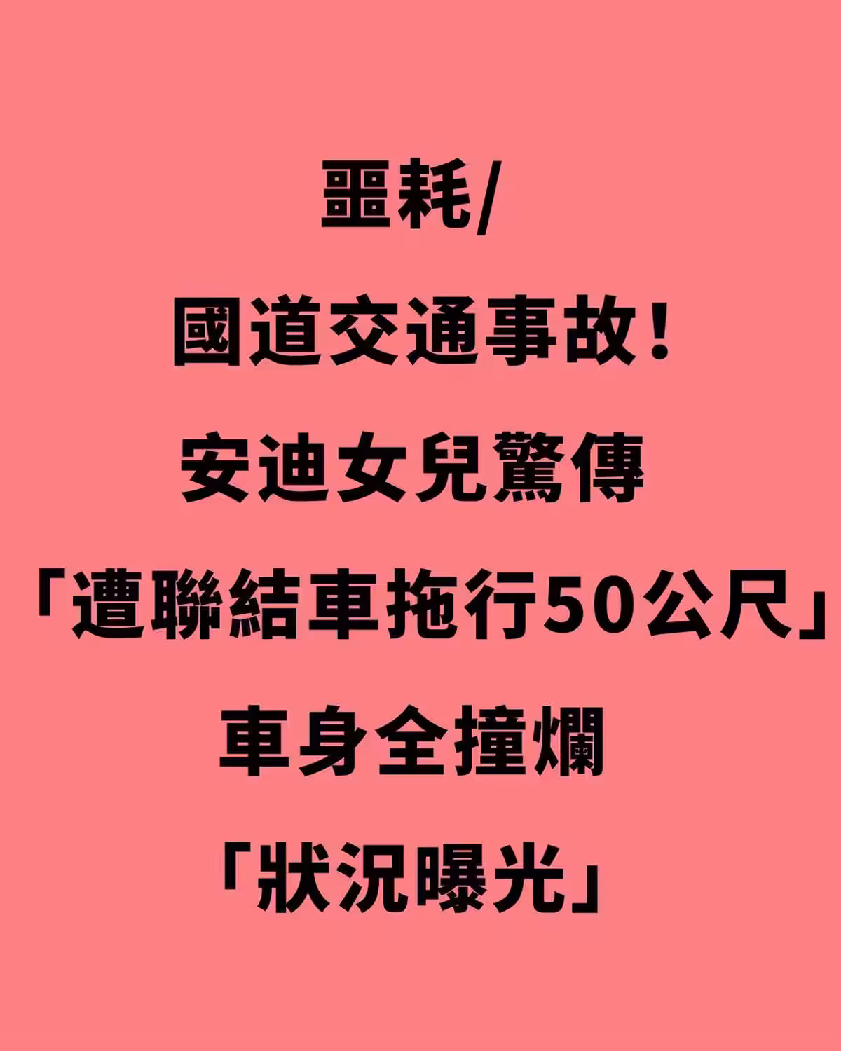 國道交通事故!!! 安迪女兒驚傳「遭聯結車拖行50米」車身全爛「狀況曝光」