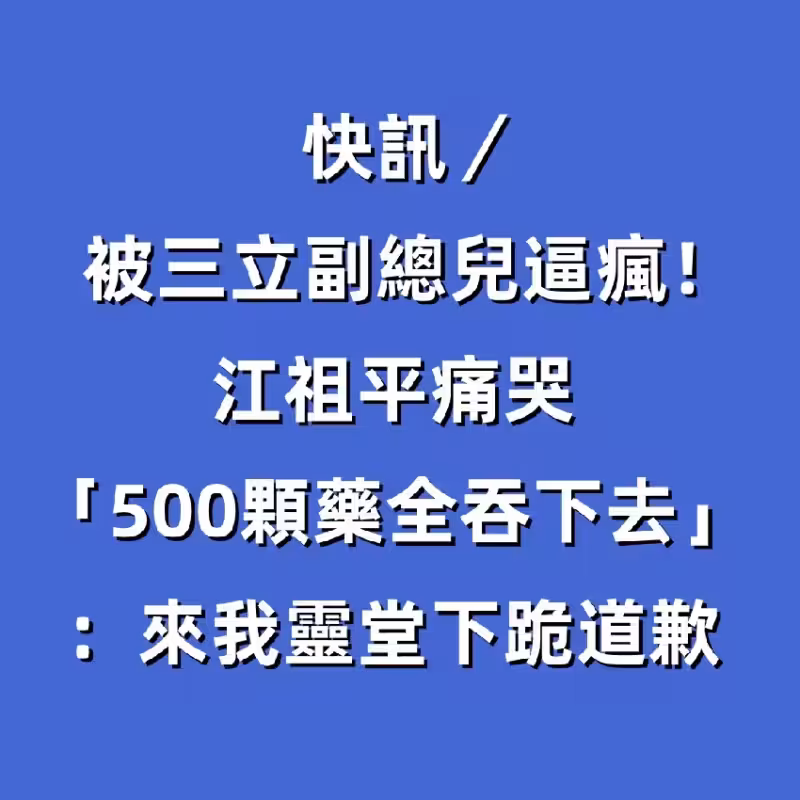 快訊/被三立副總兒逼瘋!江祖平痛哭「500顆藥全吞下去」:來我靈堂下跪道歉