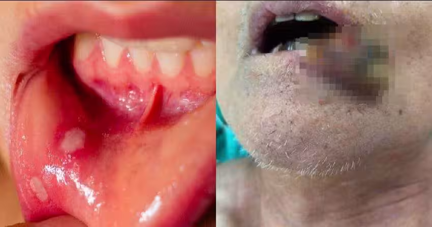 口腔黏膜出現不明顏色的斑塊,如白斑、紅斑或紅白斑。