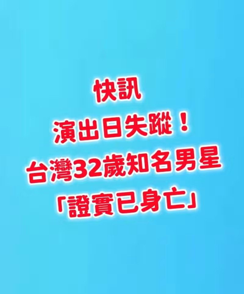 快訊/演出日失蹤 本土喜劇32歲知名男星「證實已身亡」