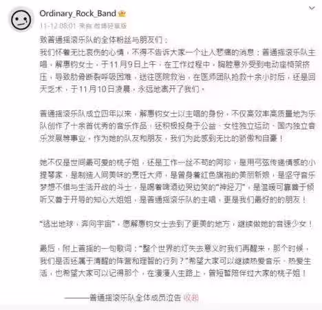 團員們也發文追憶與解惠鈞相處的4年時光,稱讚她擔任主唱期間,以高效率及高品質為樂團譜寫了超過10首優質音樂作品,除了創作外,她也熱心投入公益活動、女性自主運動及獨立音樂推廣,