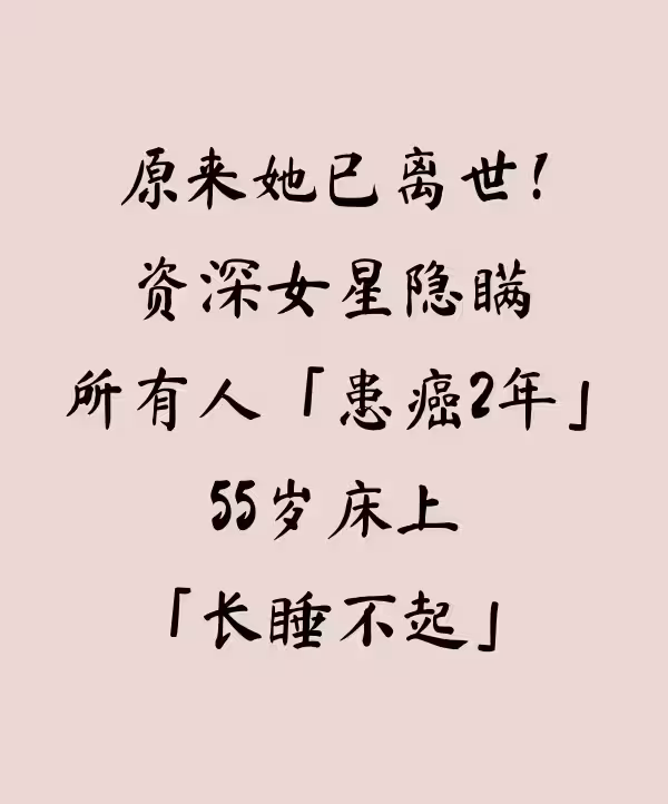 原來她已離世!欺騙所有人患癌2年,55歲床上「長睡不起」