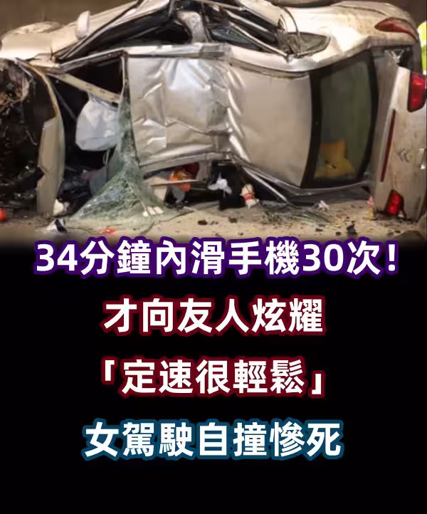 34分鐘內滑手機30次!才向友人炫耀「定速很輕鬆」 女駕駛自撞慘死