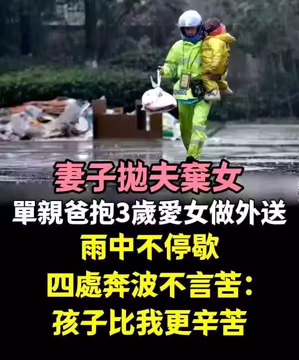 妻子拋夫棄女,單親爸抱3歲愛女做外送,雨中不停歇四處奔波不言苦:孩子比我更辛苦!